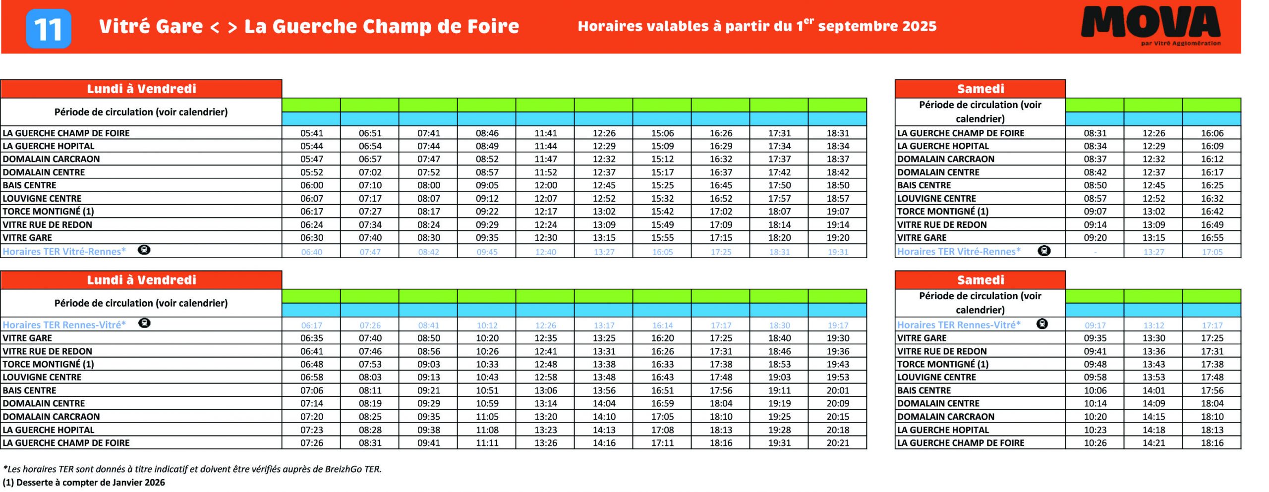 La ligne régulière de bus VITRE – LA GUERCHE fonctionne tous les jours sauf les dimanche et jours fériés. L’arrêt est fixé place de l’Eglise.